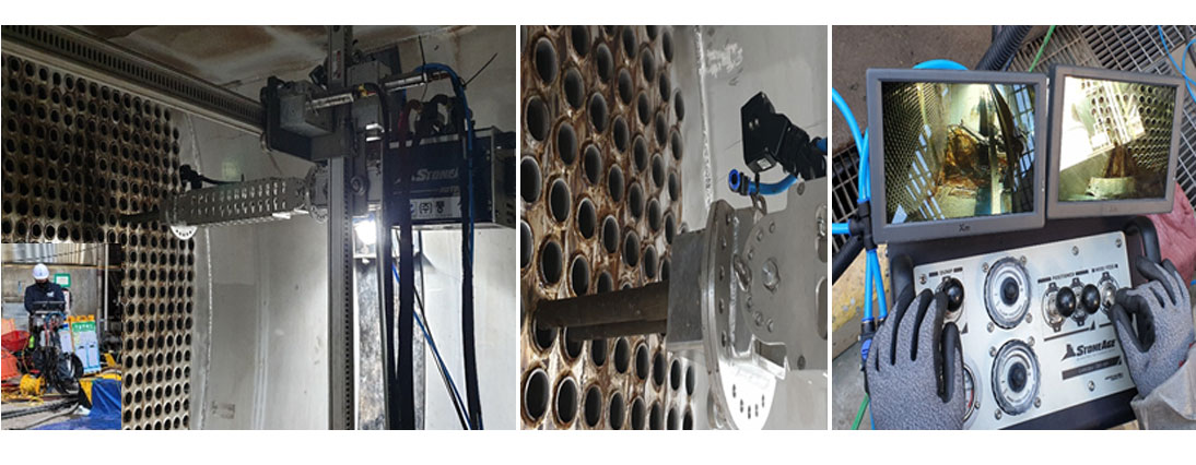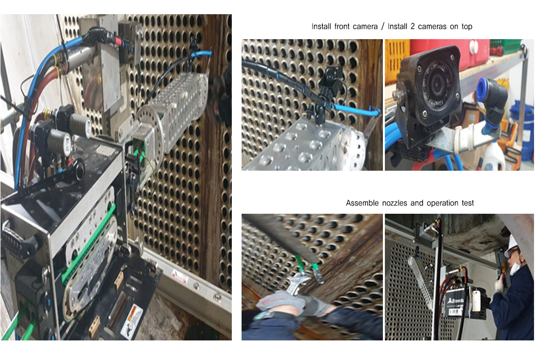 - Install cleaning equipment inside by using Jet Pump Equipment, Implement cleaning while watching and controlling inside with the camera attached outside controller